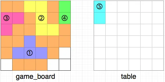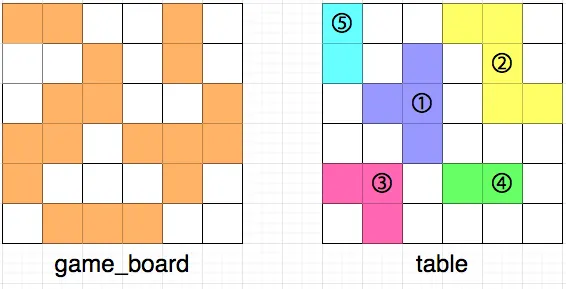 즉, 테이블은 game_board와 같은 크기의 정사각 격자 모양입니다.
