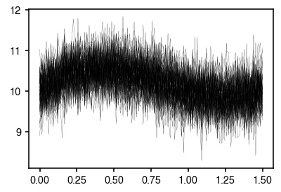 종종 x 변화에 따른 y 변화의 경향을 보는 실험을 많이 반복하여 그 결과를 나타내야 할 경우가 있다. 이 때, 수많은 line들을 한 plot에 그려야 하는데, 보통 정신없고 깔끔하지 않은 경우가 많다. 아래의 그림이 그 예이다.