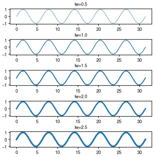 for i, lw in enumerate(np.arange(0.5, 3, 0.5)):