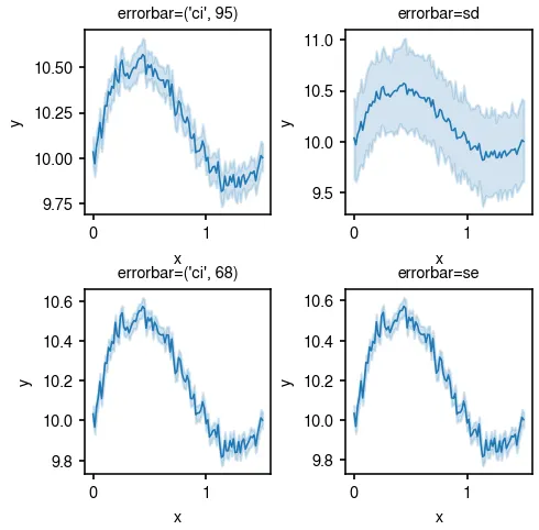 errorbars = [('ci', 95), 'sd', ('ci', 68), 'se']