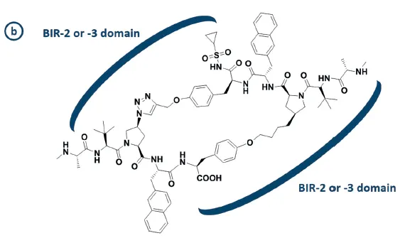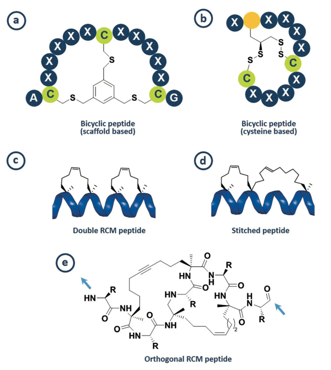 a) Cyclization을 유도하는 scaffold를 사용하는 bicyclic peptide.