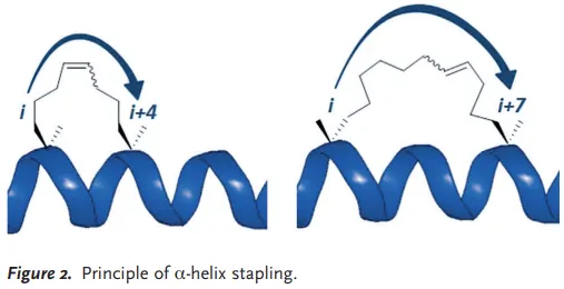 protein-protein interfaces에서 binding motifs의 가 -helices → 따라서 이 구조를 mimic하고 stabilize하는 데에 focus가 되었었음.