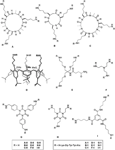 d) c)와 유사하지만 Macrocycle이 서로 맞붙어있음. 더 안정적이고, cellular uptake도 더 잘 된다고 함. 하지만 Therapeutic application은 아직 보고되지 않음.