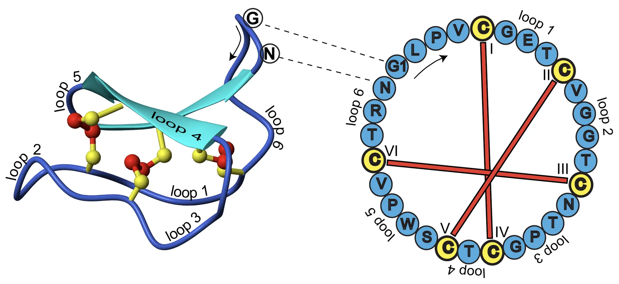 식물에서 유래한 disulfide-rich peptide. 보통 28-37개의 아미노산을 가짐. 많이 연구됨.