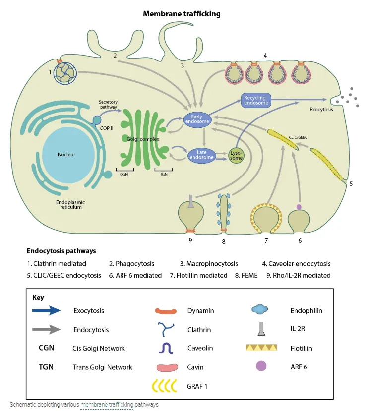 (참고) membrane trafficking: cargo가 세포막에 붙어있는 transport vesicle을 이용해 세포막을 통과하는 것 (endocytosis, exocytosis 모두 포함)
