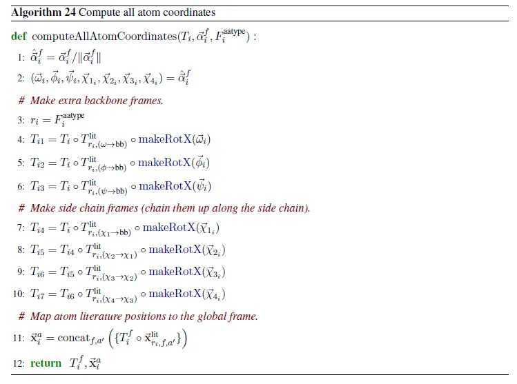 Ground-truth position을 생성하기 위하여 atom coordinate으로부터 backbone frame들을 계산한다.