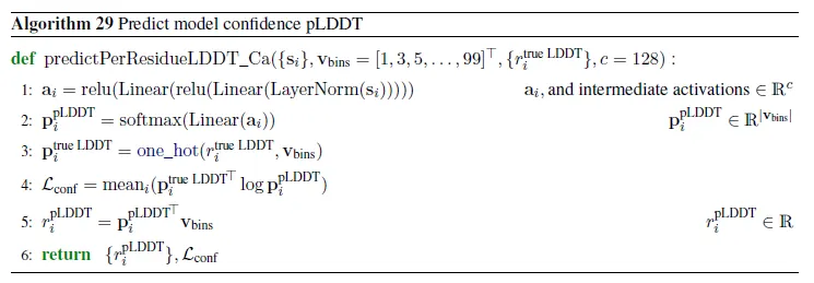 FAPE loss를 에 대해서만 수행하는 cheap version의 FAPE loss를 lDDT-라 한다. AlphaFold2는 residue 단위로 lDDT-가 얼마나 될지 예측하는 intrinsic model accuracy estimate이 존재하는데, 이를 pLDDT라 부른다.