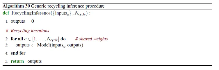 Training과 inference 시의 recycling procedure의 pseudocode는 다음과 같다.