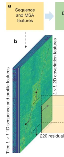 AlphaFold , trRosseta (Yang et al., PNAS, 2019) 등의 deep learning 기반 protein structure prediction 기법들은 end-to-end 라고 보기 어렵다. 이들은 먼저 MSA, residue pair feature 등을 이용하여 residue 사이의 distance(혹은 all-pair distance를 나타내는 distogram)를 예측하는 deep learning 모델을 학습시키고, 해당 모델로부터 예측된 distogram을 만족하는 다양한 protein structure 중 최소의 potential energy를 가지는 structure를 찾는 문제를 optimization 문제로 formulation하여 풂으로써 final protein structure를 얻는다. 즉, end-to-end가 아닌 distogram prediction → protein structure optimization 의 two-step procedure라고 봐도 무방할 듯 하다.