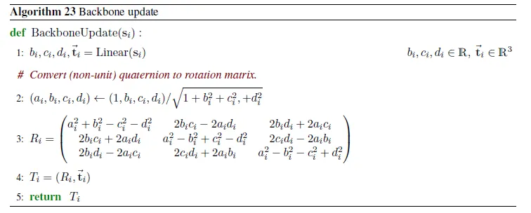 Backbone frame을 update하는 transform을 예측하는데, 방법은 매우 간단하다.