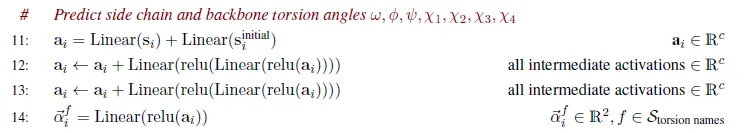 제일 먼저, 와 의 nonlinear combination을 이용해서 torsion angle들을 예측한다.