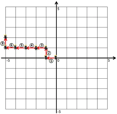 1번 명령어부터 6번 명령어대로 움직인 후, 7, 8번 명령어는 무시합니다. 다시 9번 명령어대로 움직입니다.