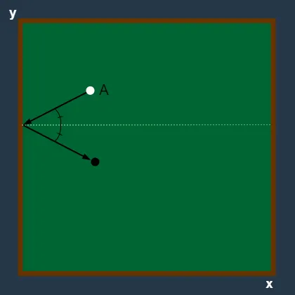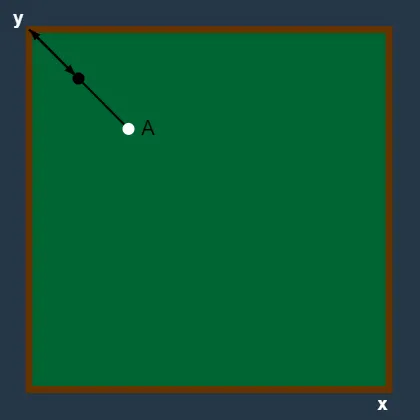 단, 머쓱이가 친 공이 벽에 부딪힐 때 진행 방향은 항상 입사각과 반사각이 동일하며, 만약 꼭짓점에 부딪힐 경우 진입 방향의 반대방향으로 공이 진행됩니다. 공의 크기는 무시하며, 두 공의 좌표가 정확히 일치하는 경우에만 두 공이 서로 맞았다고 판단합니다. 공이 목표 공에 맞기 전에 멈추는 경우는 없으며, 목표 공에 맞으면 바로 멈춘다고 가정합니다.