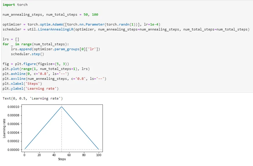이 기회에 PyTorch의 learning rate scheduler들이 어떻게 구현되어 있는지 공부하기 위해서, learning rate가 특정 값까지 linear하게 상승했다가 다시 linear하게 감소하는 LinearAnnealingScheduler를 직접 구현해보려고 한다.